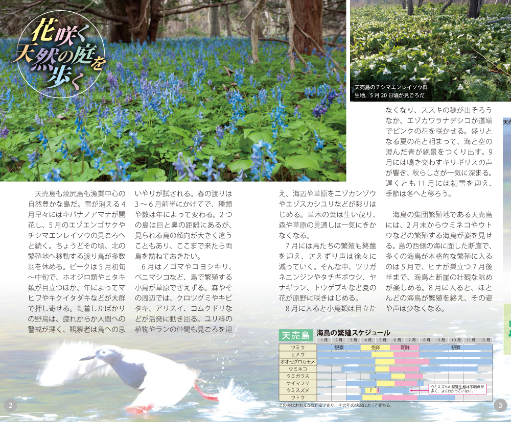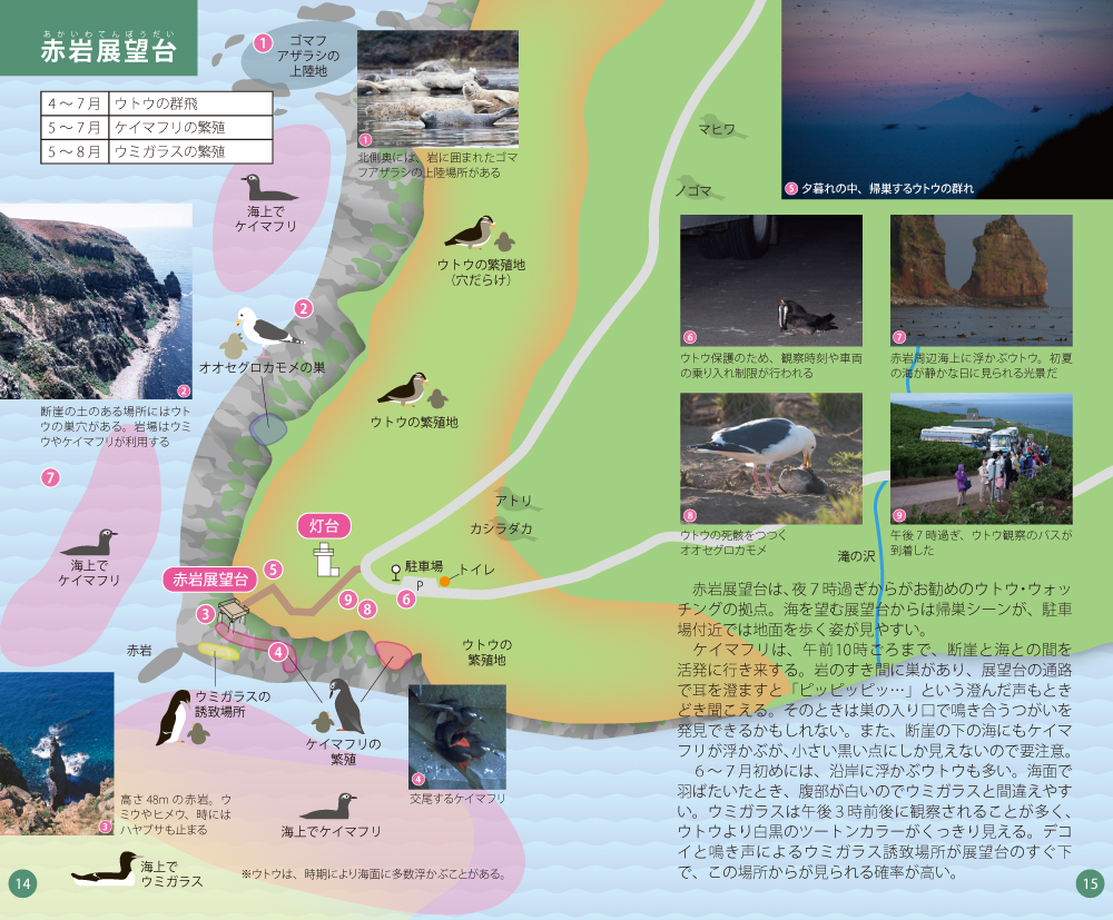 生き物の写真はすべて天売島・焼尻島内で撮影したもので、詳しい撮影ポイントも記載。