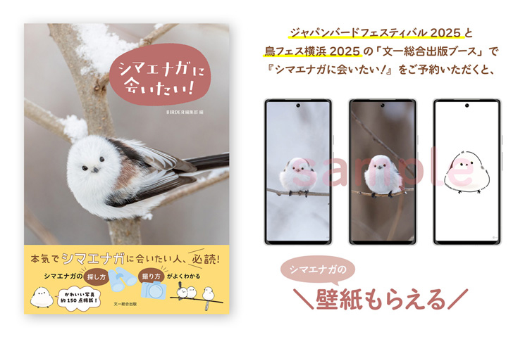 11月26日㈬発売の新刊【シマエナガに会いたい!】の会場先行予約を『ジャパンバードフェスティバル』と『鳥フェス横浜』の2か所で行います。会場でご予約くださった方にはオリジナルシマエナガ壁紙をプレゼント!