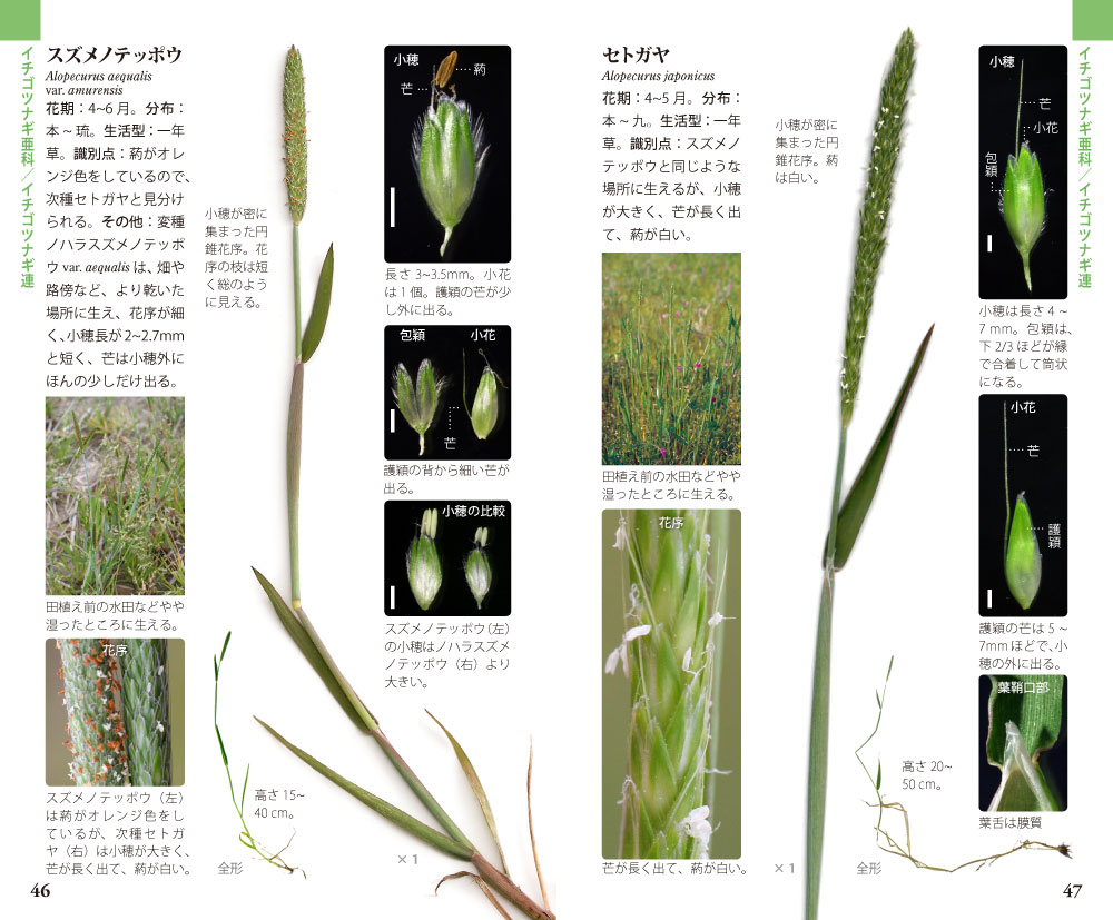 地味な印象のあるイネ科植物ですが、稲や小麦をはじめとして人間の食糧生産に大きく貢献しています。取り上げたのは134種。スキャナーを使った写真なので、自然観察にもってこいです。
